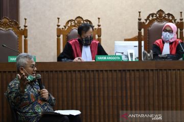 KETUA KPU JADI SAKSI SIDANG TIPIKOR. Ketua Komisi Pemilihan Umum (KPU) Arief Budiman (kiri) mengikuti sidang sebagai saksi di Pengadilan Tipikor, Jakarta, Kamis (4/6/2020). Sidang yang beragendakan mendengarkan keterangan saksi tersebut terkait sejumlah keputusan yang dilakukan secara kolektif kolegial dalam pengangkatan anggota pengganti antar waktu (PAW) Harun Masiku dalam dugaan suap terhadap terdakwa mantan anggota KPU, Wahyu Setiawan. ANTARA FOTO/M Risyal Hidayat/hp.