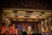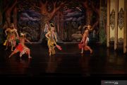 Pemain Wayang Orang Sriwedari mementaskan lakon Tibaning kamulyansih yang disiarkan secara daring di Gedung Wayang Orang Sriwedari, Solo, Jawa Tengah, Kamis (4/6/2020). Pementasan wayang orang secara daring tersebut untuk menghibur masyarakat dan melestarikan budaya Indonesia yang disesuaikan dengan protokol penanganan pandemi COVID-19. ANTARA FOTO/Maulana Surya/hp.
