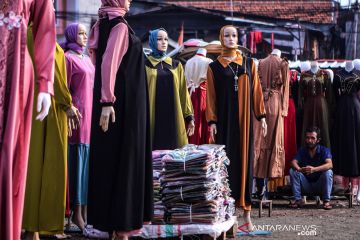 Pedagang menunggu pembeli di Pasar Tasik, Jakarta, Kamis (11/6/2020). Pasar tersebut kembali dibuka saat Pembatasan Sosial Berskala Besar (PSBB) transisi dengan menerapkan protokol kesehatan dan pembatasan jumlah pengunjung. ANTARA FOTO/Fauzan/foc.