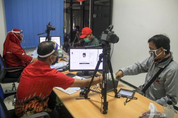 Petugas merekam data pemohon Surat Izin Mengemudi (SIM) di ruang pembuatan SIM di Polresta Sidoarjo, Jawa Timur, Rabu (17/6/2020). Satpas SIM dan Samsat Tangguh Semeru memberikan pelayanan yang nyaman bagi masyarakat yang akan membuat SIM baru maupun perpanjangan dengan menerapkan protokol kesehatan COVID-19 secara ketat. ANTARA FOTO/Umarul Faruq/wsj.