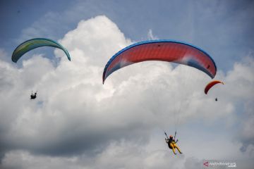 Atlet paralayang menjalani sesi latihan akurasi pendaratan di Kampung Toga, Kabupaten Sumedang, Jawa Barat, Sabtu (20/6/2020). Atlet paralayang Pelatda Jawa Barat kembali menggelar sesi latihan untuk persiapan PON XX di Papua pada Oktober 2021 mendatang setelah sempat vakum selama tiga bulan akibat pandemi COVID-19. ANTARA FOTO/Raisan Al Farisi/wsj.