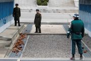 FOTO ARSIP: Tentara Korea Utara melihat ke arah seorang tentara Korea Selatan yang berjaga di lokasi gencatan senjata Desa Panmunjom di kawasan Zona Demiliterisasi di Paju, sebelah utara Kota Seoul, Korea Selatan (2/12/2011). ANTARA FOTO/REUTERS/Lee Jae-won/Arsip Foto/wsj.