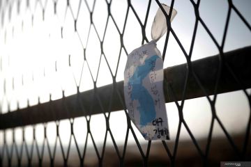 FOTO ARSIP: Sebuah bendera unifikasi tergantung di sebuah pagar dekat Zona Demiliterisasi yang memisahkan kedua Korea di Paju, Korea Selatan (19/1/2018). Tulisan dalam bahasa Korea tersebut berbunyi" Saya sangat ingin berjalan dengan bebas di luar pagar militer ini". ANTARA FOTO/REUTERS/Kim Hong-Ji/Foto Arsip/wsj.