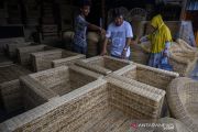 Pekerja merampungkan pembuatan ayunan bayi dari bahan rotan di salah satu sentra industri rotan di Palu, Sulawesi Tengah, Selasa (23//6/2020). Setelah terpuruk akibat pandemi COVID-19, industri mebel rotan kembali bergairah ditandai dengan beroperasinya kembali sejumlah usaha mebel rotan dan meningkatnya pesanan. ANTARAFOTO/Basri Marzuki/pras.
