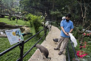 Pekerja memberi makan berbagai jenis burung di Kebun Binatang Bandung (Bandung Zoological Garden), Bandung, Jawa Barat, Sabtu (27/6/2020). Setelah lebih dari dua bulan ditutup akibat pandemi COVID-19, Kebun Binatang Bandung kembali dibuka untuk umum dengan menerapkan protokol kesehatan pada masa pemberlakuan normal baru atau adaptasi kebiasaan baru. ANTARA FOTO/M Agung Rajasa/hp.
