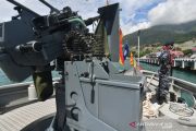 Personel Kapal Angkatan Laut (KAL) Talise berjaga di atas kapal saat bersandar di Dermaga Pangkalan TNI AL (Lanal) Palu di Palu, Sulawesi Tengah, Senin (6/7/2020). Kehadiran Kapal perang produksi dalam negeri yang dilengkapi dengan sejumlah sistem persenjataan itu akan menjalankan tugas dan fungsinya untuk memperkuat pertahanan dan mendukung Lanal Palu dalam patroli serta penegakan hukum di laut guna menjaga kedaulatan NKRI. ANTARA FOTO/Mohamad Hamzah/pras.