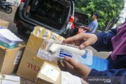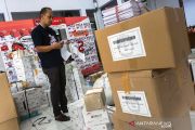 Petugas mengecek perlengkapan Alat Pelindung Diri (APD) yang akan didistribusikan kepada Petugas Pemutakhiran Data Pemilih (PPDP) di Komisi Pemilihan Umum (KPU) Kabupaten Pekalongan, Jawa Tengah, Jumat (10/7/2020). KPU Kabupaten Pekalongan mendistribusikan APD kepada PPDP yang berada di 19 kecamatan untuk melaksanakan pemutakhiran data pemilih atau coklit Pilkada 2020 yang dimulai pada 15 Juli mendatang. ANTARA FOTO/Harviyan Perdana Putra/aww.