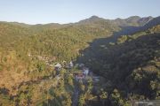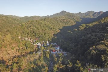 Foto udara panorama alam kawasan Desa Wisata Semongkat di Kecamatan Batulanteh, Kabupaten Sumbawa, NTB, Sabtu (25/7/2020). Desa wisata Semongkat memiliki luas 100,5 hektare dengan potensi alam perbukitan serta hutan yang masih terjaga dikembangkan sebagai daya tarik wisatawan sebagai Taman Wisata Alam yang dapat memberikan pemasukan bagi desa maupun masyarakat sekitar. ANTARA FOTO/Ahmad Subaidi/hp.