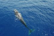 Foto dari udara memperlihatkan seekor paus sperma di Laut China Selatan, Jumat (24/7/2020). Tim peneliti China menemukan 11 spesies paus di Laut China Selatan selama ekspedisi ilmiah laut dalam, kata Akademi Ilmu Pengetahuan China pada Selasa (28/7) kemaren. ANTARA FOTO/Xinhua-Zhang Liyun/hp.
