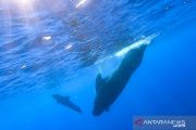Paus pilot sirip pendek terlihat di Laut China Selatan, 20 Juli 2020 lalu. Tim peneliti China menemukan 11 spesies paus di Laut China Selatan selama ekspedisi ilmiah laut dalam, kata Akademi Ilmu Pengetahuan China pada Selasa (28/7) kemaren. ANTARA FOTO/Xinhua-Zhang Liyun/hp.