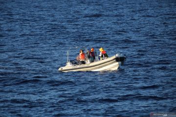 Para peneliti menaiki sebuah perahu untuk melakukan pengamatan dari jarak dekat di Laut China Selatan, 15 Juli 2020 lalu. Tim peneliti China menemukan 11 spesies paus di Laut China Selatan selama ekspedisi ilmiah laut dalam, kata Akademi Ilmu Pengetahuan China pada Selasa (28/7) kemaren. ANTARA FOTO/Xinhua-Zhang Liyun/hp.