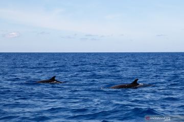 Paus pembunuh palsu terlihat di Laut China Selatan, 18 Juli 2020 lalu. Tim peneliti China menemukan 11 spesies paus di Laut China Selatan selama ekspedisi ilmiah laut dalam, kata Akademi Ilmu Pengetahuan China pada Selasa (28/7) kemaren. ANTARA FOTO/Xinhua-Zhang Liyun/hp.