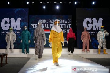 PERAGAAN BUSANA APD YOGYAKARTA. Petugas medis memperagakan busana Alat Pelindung Diri (APD) COVID-19 saat Petugas medis memperagakan busana Alat Pelindung Diri (APD) COVID-19 saat Peragaan Busana Virtual APD COVID-19 di kantor GM Production, Sleman, D.I Yogyakarta, Sabtu (1/8/2020). Peragaan yang menampilkan APD COVID-19 produksi UMKM di Yogyakarta secara virtual itu menjadi media apresiasi bagi petugas medis, relawan serta UMKM yang turut berjuang melawan pandemi COVID-19. ANTARA FOTO/Andreas Fitri Atmoko/wsj. Busana Virtual APD COVID-19 di kantor GM Production, Sleman, D.I Yogyakarta, Sabtu (1/8/2020). Peragaan yang menampilkan APD COVID-19 produksi UMKM di Yogyakarta secara virtual itu menjadi media apresiasi bagi petugas medis, relawan serta UMKM yang turut berjuang melawan pandemi COVID-19. ANTARA FOTO/Andreas Fitri Atmoko/wsj.ANTARA FOTO/Andreas Fitri Atmoko (ANTARA FOTO/Andreas Fitri Atmoko)