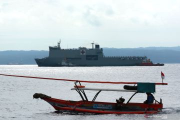 KRI dr Soeharso-990 bersiap sandar di Pelabuhan Pusri, Banyuwangi, Jawa Timur, Kamis (13/8/2020). Sebanyak 120 prajurit baru mengikuti program pelatihan untuk mengawaki kapal bantu rumah sakit tersebut. ANTARA FOTO/Budi Candra Setya/foc.