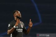 Pemain Olympique Lyonnais Moussa Dembele merayakan gol saat melawan Manchester City dalam laga perempat final Liga Champions di Jose Alvalade Stadium, Lisbon, Portugal, Sabtu (15/8/2020). Lyon menang 3-1 atas City dan melangkah ke semifinal. ANTARA FOTO/Miguel A. Lopes/Pool via REUTERS/foc.