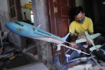 Seorang perajin memasang penyangga saat membuat miniatur pesawat di Beran, Kismoyoso, Ngemplak, Boyolali, Jawa Tengah, Selasa (25/8/2020). Kerajinan miniatur pesawat yang terbuat dari bahan kayu balsan tersebut dijual dengan harga Rp150 ribu hingga Rp1,2 juta tergantung ukuran dan kesulitan dalam pembuatannya dan telah dijual ke berbagai daerah di Indonesia. ANTARA FOTO/Aloysius Jarot Nugroho/pras.