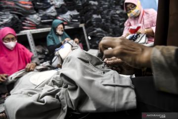 Pekerja Usaha Kecil dan Menengah (UKM) menyelesaikan pembuatan celana berbahan denim di Pusat Industri Kreatif, Jakarta, Rabu (26/8/2020). Menteri Koordinator Bidang Perekonomian Airlangga Hartarto mengatakan realisasi anggaran pemulihan ekonomi nasional terus meningkat, dari total pagu anggaran Rp695 triliun, per Agustus ini sudah Rp173,98 triliun yang direalisasikan atau naik 18 persen dibandingkan semester I kemarin Rp124,6 triliun. ANTARA FOTO/Muhammad Adimaja/wsj.