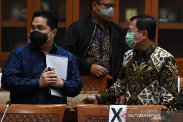 Menteri Kesehatan Terawan Agus Putranto (kanan) bersama Ketua Pelaksana Komite Penanganan COVID-19 dan Pemulihan Ekonomi Nasional Erick Thohir (kiri) bersiap mengikuti Rapat Dengar Pandapat dengan Komisi IX DPR di Kompleks Parlemen Senayan, Jakarta, Kamis (27/8/2020). RDP tersebut membahas efektivitas pengorganisasian dan penganggaran dalam penanganan COVID-19, termasuk perkembangan tentang uji vaksin untuk COVID-19. ANTARA FOTO/Puspa Perwitasari/hp.