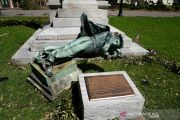Sebuah monumen rusak usai diterjang badai tropis Laura di Lake Charles, Louisiana, AS, Kamis (27/8/2020). ANTARA FOTO/REUTERS/Elijah Nouvelage/foc.
