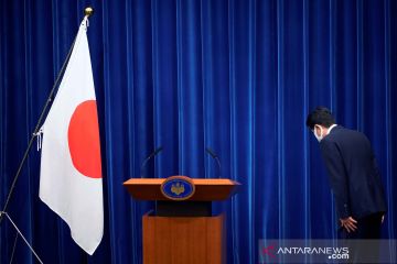 Perdana Menteri Jepang Shinzo Abe menghadiri konferensi pers di kediaman resmi perdana menteri di Tokyo, Jepang, 28 Agustus 2020. Shinzo Abe secara resmi menyatakan mengundurkan diri sebagai PM Jepang karena alasan kesehatan. ANTARA FOTO/Franck Robichon/ Pool via REUTERS/aww.