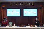 Penonton Bioskop XXI duduk berjaga jarak saat pemeriksaan kesiapan bioskop beroperasi kembali di Pusat Grosir Cililitan, Jakarta, Sabtu (29/8/2020). Pemprov DKI Jakarta akan membuka bioskop di Jakarta untuk beroperasi kembali dengan protokol kesehatan yang ketat. ANTARA FOTO/Hafidz Mubarak A/wsj.