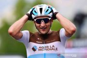 Pebalap sepeda dari AG2r La Mondiale asal Prancis, Nans Peters merayakan kemenangannya pada etape ke-8 Tour de France 2020 yang menempuh jarak 140 Km dari Cazeres ke Loudenvielle, Prancis, Sabtu (5/9/2020). ANTARA FOTO/Stuart Franklin/Pool via REUTERS/wsj.