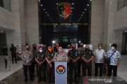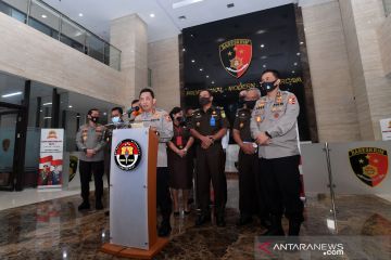 Kabareskrim Polri Komjen Pol Listyo Sigit Prabowo (kedua kanan) berbincang dengan Kadiv Humas Polri Irjen Pol Argo Yuwono (kanan) sebelum menyampaikan hasil gelar perkara kebakaran Gedung Utama Kejaksaan Agung di Bareskrim Polri, Jakarta, Kamis (17/9/2020). Komjen Pol Listyo Sigit Prabowo menyatakan penanganan kasus kebakaran Gedung Utama Kejaksaan Agung naik dari penyelidikan ke penyidikan karena ada dugaan pidana dalam peristiwa tersebut. ANTARA FOTO/Sigid Kurniawan/hp.