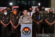 Kabareskrim Polri Komjen Pol Listyo Sigit Prabowo (ketiga kiri) beserta jajaran dari Kejaksaan Agung menyampaikan hasil gelar perkara kebakaran Gedung Utama Kejaksaan Agung di Bareskrim Polri, Jakarta, Kamis (17/9/2020). Komjen Pol Listyo Sigit Prabowo menyatakan penanganan kasus kebakaran Gedung Utama Kejaksaan Agung naik dari penyelidikan ke penyidikan karena ada dugaan pidana dalam peristiwa tersebut. ANTARA FOTO/Sigid Kurniawan/hp.