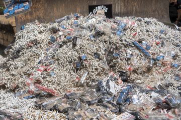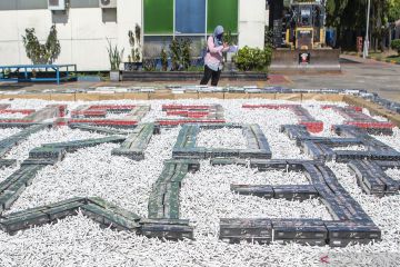 Sejumlah barang bukti rokok ilegal dimuskahkan dengan cara dibakar di Palembang, Sumatera Selatan, Rabu (23/9/2020). Kantor Wilayah Bea dan Cukai Sumatera bagian timur bersama Kantor Pengawasan dan Pelayanan Bea dan Cukai Type Madia Pabean B Palembang memusnahan 5.714.869 batang rokok ilegal, 330 botol minuman keras impor ilegal, 200.800gram tembakau iris, delapan buah airsoft gun, 125 buah sex toys, 10 buah dental equipment, 186 buah busur panah dan 432 buah karpet dengan total nilai sebesar Rp.2,8 miliar dengan potensi kerugian negara yang ditimbulkan sebesar Rp.2,7 miliar. ANTARA FOTO/Nova Wahyudi/hp.