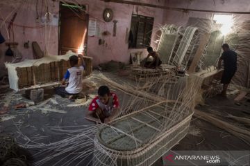 Perajin menyelesaikan pembuatan peti mati berbahan rotan di Desa Transan, Sukoharjo, Jawa Tengah, Kamis (24/9/2020). Menurut perajin permintaan peti mati rotan yang diekspor ke sejumlah negara di Eropa meningkat hingga 40 persen sejak Pendemi COVID-19. ANTARA FOTO/Mohammad Ayudha/foc.