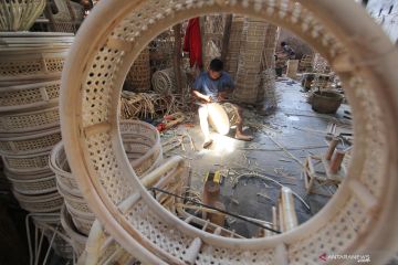 Perajin menyelesaikan pesanan kerajinan rotan di Tegalwangi, Kabupaten Cirebon, Jawa Barat, Rabu (30/9/2020). Pengusaha mengaku, sejak memasuki masa Adaptasi Kebiasaan Baru, permintaan ekspor produk kerajinan rotan dari berbagai negara mulai meningkat hingga 40 persen. ANTARA FOTO/Dedhez Anggara/foc.