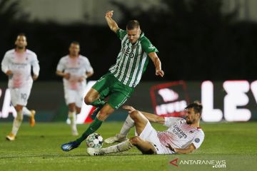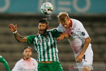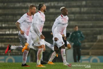 Pemain AC Milan merayakan kemenangan atas Rio Aves pada pertandingan kualifikasi Liga Europa di Estadio dos Arcos, Vila do Conde, Portugal, Jumat (2/10/2020) dini hari. Milan lolos ke fase grup Liga Europa setelah menang melalui adu penalti 2-2 (8-9). ANTARA FOTO/REUTERS/Rafael Marchante/pras.