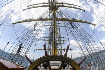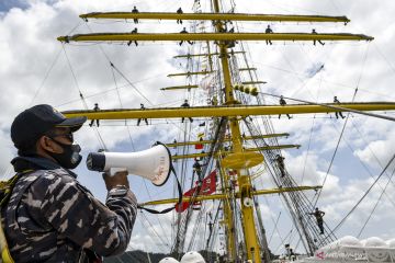 Taruna AAL tingkat III angkatan ke-67 mengikuti peran parade roll akan tolak dari Dermaga Pangkalan TNI AL (Lanal) Caligi, Pesawangan, Lampung, Selasa (6/10/2020). KRI Bima Suci akan melanjutkan pelayaran rute kedua menuju Padang dalam mendukung latihan praktek (lattek) Kartika Jala Krida (KJK) 2020. ANTARA FOTO/M Risyal Hidayat/wsj.