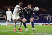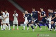 Pemain Skotlandia meluapkan kegembiraannya setelah memenangi adu penalti melawan Israel pada babak play off kualifikasi Euro 2020 di Hampden Park, Glasgow, Skotlandia, Inggris (8/10/2020). Skotlandia menang adu penalti dengan skor 5-3. ANTARA FOTO/REUTERS/Russell Cheyne/aww.