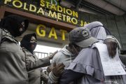 Peserta aksi memeluk orang tuanya usai dipulangkan di Polda Metro Jaya, Jakarta, Rabu (14/10/2020). Polda Metro Jaya memulangkan ratusan peserta aksi yang diamankan dalam aksi unjuk rasa menolak UU Cipta Kerja. ANTARA FOTO/Aprillio Akbar/hp.