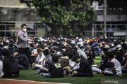 Peserta aksi mencium kaki orang tuanya usai dipulangkan di Polda Metro Jaya, Jakarta, Rabu (14/10/2020). Polda Metro Jaya memulangkan ratusan peserta aksi yang diamankan dalam aksi unjuk rasa menolak UU Cipta Kerja. ANTARA FOTO/Aprillio Akbar/hp.