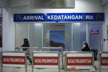 Pekerja migran berjalan keluar dari pintu kedatangan Pelabuhan Internasional Batam Centre, Batam, Kepulauan Riau, Senin (26/10/2020). Pemerintah Indonesia dan Singapura sepakat untuk membuka kembali jalur Travel Corridor Arrangement (TCA) yang memungkinkan perjalanan lintas batas untuk perjalanan bisnis yang mendesak, perjalanan diplomatik, dan kedinasan dengan membuka dua pintu masuk ke Indonesia, yaitu Bandara Soekarno Hatta, Cengkareng dan Pelabuhan Internasional Batam Centre. ANTARA FOTO/Teguh Prihatna/aww.