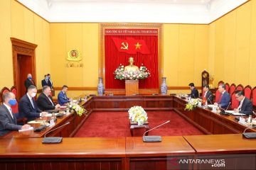 Menteri Luar Negeri AS Mike Pompeo (ketiga kiri) bertemu dengan Menteri Keamanan Publik (Polisi) Vietnam To Lam (ketiga kanan) di Hanoi, Vietnam 30 Oktober 2020. ANTARA FOTO/Doan Tan / Kantor Berita Vietnam via REUTERS/aww.