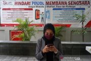Warga beraktivitas di dekat poster edukasi waspada fintech ilegal di kantor Otoritas Jasa Keuangan (OJK) Yogyakarta, Rabu (4/11/2020). Satgas Waspada Investasi (SWI) yang beranggotakan 13 kementerian dan lembaga pada Oktober ini menemukan dan memblokir 206 fintech lending ilegal dan 154 entitas yang diduga melakukan kegiatan usaha tanpa izin dari otoritas yang berwenang dan berpotensi merugikan masyarakat. AANTARA FOTO/Andreas Fitri Atmoko/wsj.