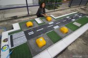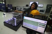 Ketua tim peneliti Melania Suweni Muntini memperlihatkan alat detektor genangan air atau Standing Water Detector (SWD) yang terpasang pada simulator landasan pacu pesawat di Departemen Fisika, Institut Teknologi Sepuluh Nopember (ITS), Surabaya, Jawa Timur, Kamis (26/11/2020). SWD hasil kerja sama ITS dengan Puslitbang Transportasi Udara, Badan Penelitian dan Pengembangan Kementerian Perhubungan tersebut sebagai upaya mendukung keselamatan transportasi udara yang mampu mendeteksi ketinggian genangan air hujan pada landasan pacu pesawat sehingga dapat memberikan informasi kepada pilot untuk bisa atau tidaknya melakukan pendaratan. ANTARA FOTO/Moch Asim/wsj.