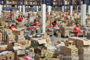 Sejumlah petugas menyortir barang pesanan konsumen di Warehouse JD ID, Marunda, Kabupaten Bekasi, Jawa Barat, Jumat (11/12/2020). Hari Belanja Online Nasional (Harbolnas) 12.12 diharapkan dapat memberikan dampak positif bagi pemulihan perekonomian Nasional. ANTARA FOTO/ Fakhri Hermansyah/aww.