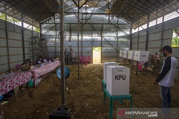 Petugas menunggu warga datang untuk pemungutan suara ulang (PSU) di TPS 11, Desa Kalukubula, Kecamatan Sigi Biromaru, Kabupaten Sigi, Sulawesi Tengah, Minggu (13/12/2020). Sebanyak empat TPS di Kabupaten Sigi melaksanakan PSU setelah ditemukan adanya pelanggaran pada pelaksanaan pemungutan suara 9 Desember 2020 lalu. ANTARA FOTO/Mohamad Hamzah/rwa.