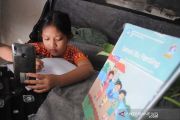 Siswi sekolah dasar mengerjakan ujian Penilaian Akhir Semester (PAS) dengan sistem daring dari kediamannya di Jalan Sersan Mesrul, Pamekasan, Jawa Timur, Rabu (16/12/2020). Pemkab Pamekasan kembali memberlakukan proses belajar mengajar melalui sistem daring menyusul meningkatnya status sebaran COVID-19 daerah itu dari warna kuning menjadi oranye. ANTARA FOTO/Saiful Bahri/aww.