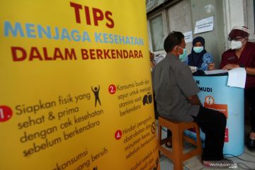 Petugas medis memeriksa kesehatan supir bus di Terminal Tegal, Jawa Tengah, Kamis (17/12/2020). Pemeriksaan kesehatan dan tes usap tersebut untuk memantau kondisi kesehatan supir bus guna mencegah penyebaran COVID-19 serta menjamin keselamatan penumpang jelang libur Natal dan Tahun Baru 2021. ANTARA FOTO/Oky Lukmansyah/wsj.