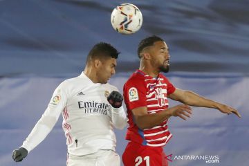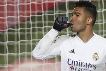 Pemain Real Madrid Casemiro merayakan golnya ke gawang Granada dalam laga lanjutan Liga Spanyol di Estadio Alfredo Di Stefano, Madrid, Spanyol, Rabu (23/12/2020). Madrid menang 2-0 dalam laga tersebut. ANTARA FOTO/REUTERS/Susana Vera/foc.