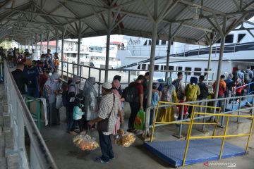Sejumlah wisatawan tiba dari Pulau Sabang di Pelabuhan Penyeberangan Ulee Lheue, Banda Aceh, Aceh, Kamis (24/12/2020). Untuk mengatasi lonjakan wisatawan yang berlibur menjelang Natal dan Tahun Baru ke Pulau Sabang, Aceh, pihak pengelola pelabuhan menambah jadwal pelayaran kapal roro dan kapal cepat dari dua kali menjadi empat kali pelayaran dalam sehari. ANTARA FOTO/Ampelsa/foc.