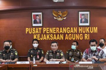 Kapuspenkum Kejaksaan Agung Leonard Eben Ezer Simanjuntak (tengah) bersama Dir Tipikor Bareskrim Polri, Brigjen Pol Djoko Poerwanto (kanan) dan Direktur Penyidikan Jampidsus Kejagung Febrie Adriansyah (kiri) memberikan keterangan pers usai menggelar gelar perkara penanganan kasus dugaan korupsi pada PT Asabri (Persero) di Kejaksaan Agung, Jakarta, Rabu (30/12/2020). Gelar perkara itu dilakukan untuk mengetahui bagaimana perkembangan kasus dugaan korupsi di Asabri ketika ditangani Polri yang saat ini ditangani oleh tiim penyidik Pidana Khusus (Pidsus) Kejagung. ANTARA FOTO/Hafidz Mubarak A/pras.