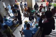 Petugas kesehatan mengambil sampel darah sejumlah pedagang pasar saat tes cepat (rapid test) COVID-19 di Pasar Besar Kota Madiun, Jawa Timur, Sabtu (2/1/2021). Ratusan orang terdiri pedagang serta mereka yang beraktivitas di pasar tersebut menjalani tes cepat menyusul adanya puluhan orang dinyatakan positif COVID-19 berdasarkan hasil tes ucap PCR dan beberapa orang diantaranya dikabarkan meninggal dunia. ANTARA FOTO/Siswowidodo/wsj. #satgascovid19