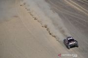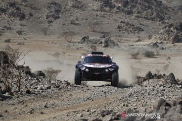 Pembalap X-Raid MINI JCW Team, Carlos Sainz, melaju dengan mobilnya saat etape pertama Reli Dakar 2021 di Jeddah, Aran Saudi, Minggu (3/1/2021). Carlos Sainz, memenangkan etape pertama dari Jeddah ke Bisha sejauh 623 km setelah berhasil unggul 25 detik dari sang rekan sekaligus pembalap berjuluk Mr. Dakar, Stephane Peterhansel. ANTARA FOTO/REUTERS/Hamad I Mohammed/pras.