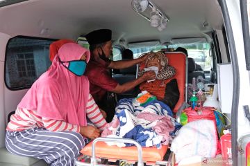 Prajurit TNI bersama relawan menggendong pengungsi yang sakit saat evakuasi pengungsi gunung Merapi di Desa Babadan 2, Paten, Dukun, Magelang, Jawa Tengah, Kamis (7/1/2021). Seiring meningkatnya aktivitas vulakanik gunung Merapi, ratusan warga kelompok rentan yakni lansia, anak-anak, ibu hamil dan penyandang disabilitas yang berada di kawasan rawan bencana kembali diungsikan setelah sebelumnya pulang karena merasa bosan di pengungsian. ANTARA FOTO/Anis Efizudin/hp.